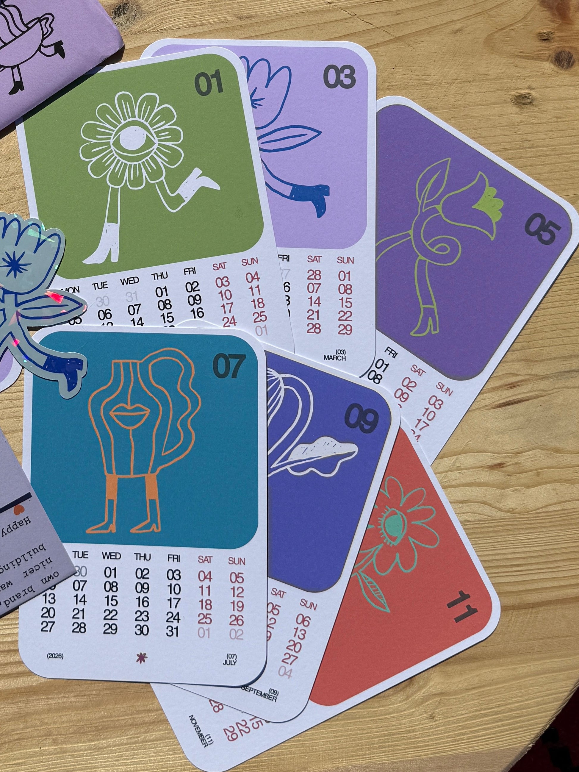 Organize your year in style with our full year 2026 calendar—a playful, beautifully designed collection featuring 6 double-sided A6 cards.