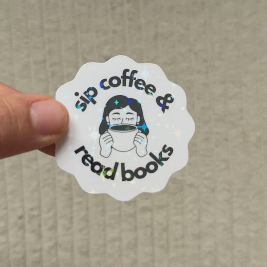 This holographic sticker is made for cozy book lovers, coffee shop regulars, and anyone who dreams of quiet mornings with a latte and their latest read. Perfect for your Kindle, laptop, or reading journal!